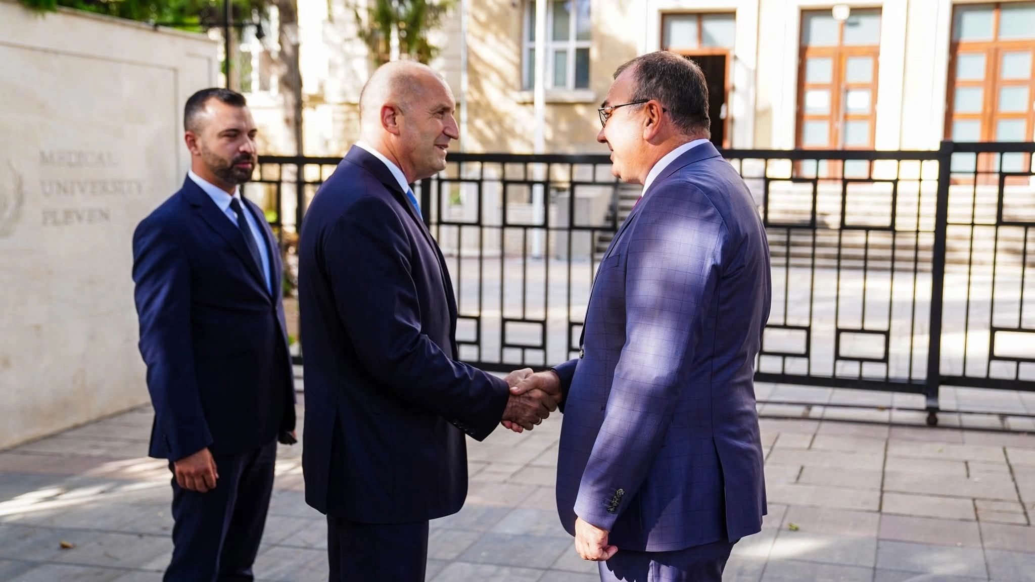 The President also showed interest in MU-Pleven’s new educational programs and the role of high-tech solutions in shaping the healthcare professionals of tomorrow. Rector Dimitrov presented the University’s latest achievement – the launch of the new Faculty of Veterinary Medicine, making MU-Pleven the only medical university in Bulgaria to integrate human medicine, veterinary medicine, and pharmacy. He also showcased innovations in teaching and practice: 3D anatomy tables, augmented & virtual reality, telemedicine, and AI applications in diagnostics and therapy. A unique joint program in Telemedicine with the Higher School of Telecommunications and Posts was also discussed.