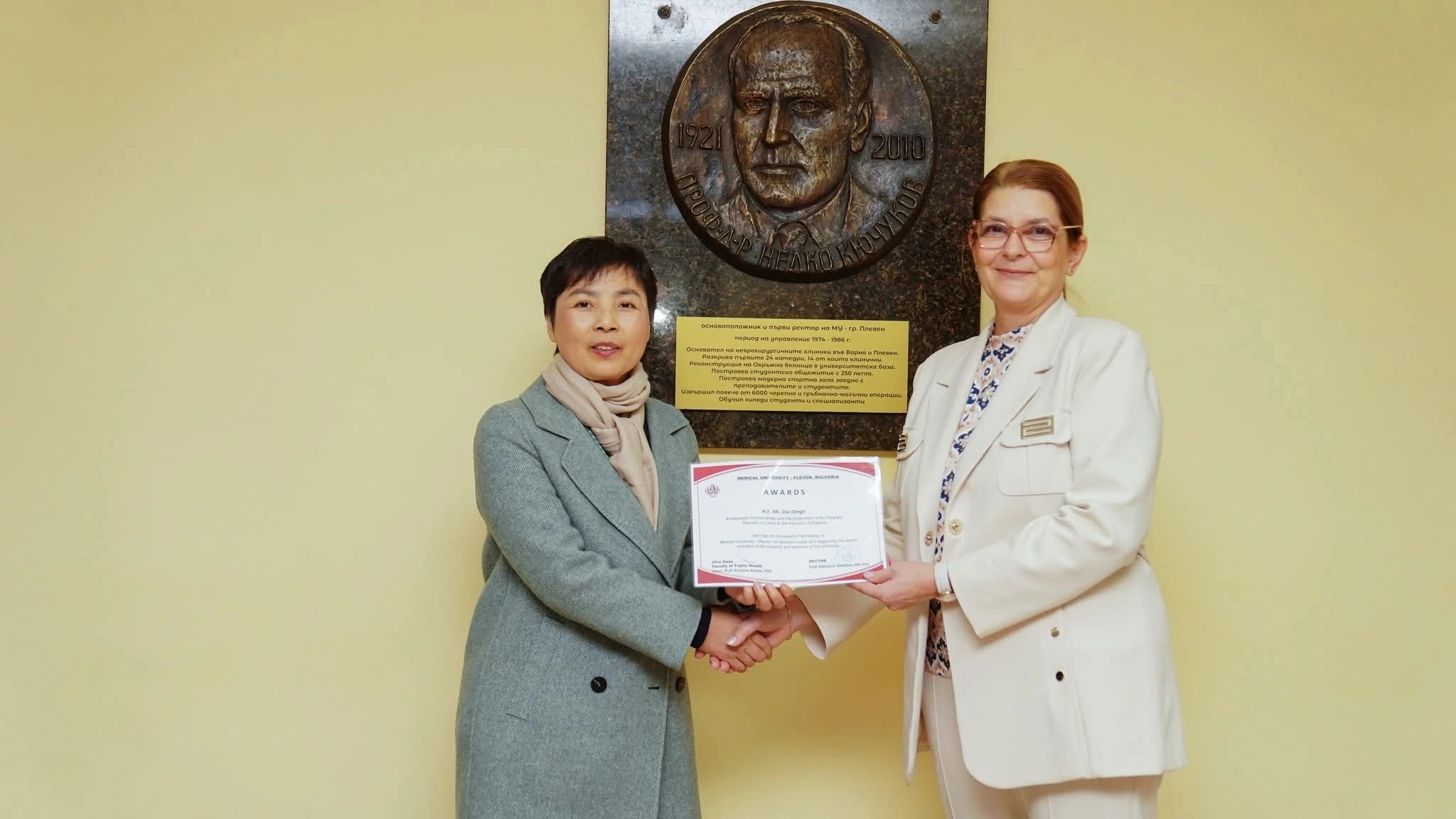 As a sign of appreciation, Prof. Dimitrov awarded H.E. Dai Qingli with a plaque for successful partnership, expressing readiness to expand joint projects with leading Chinese universities and hospitals.