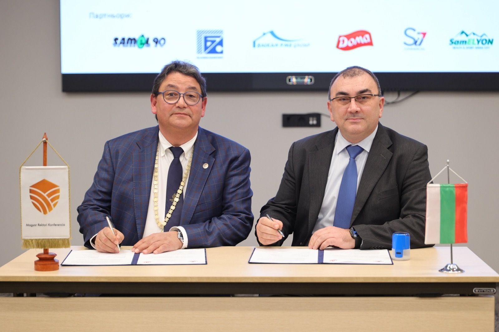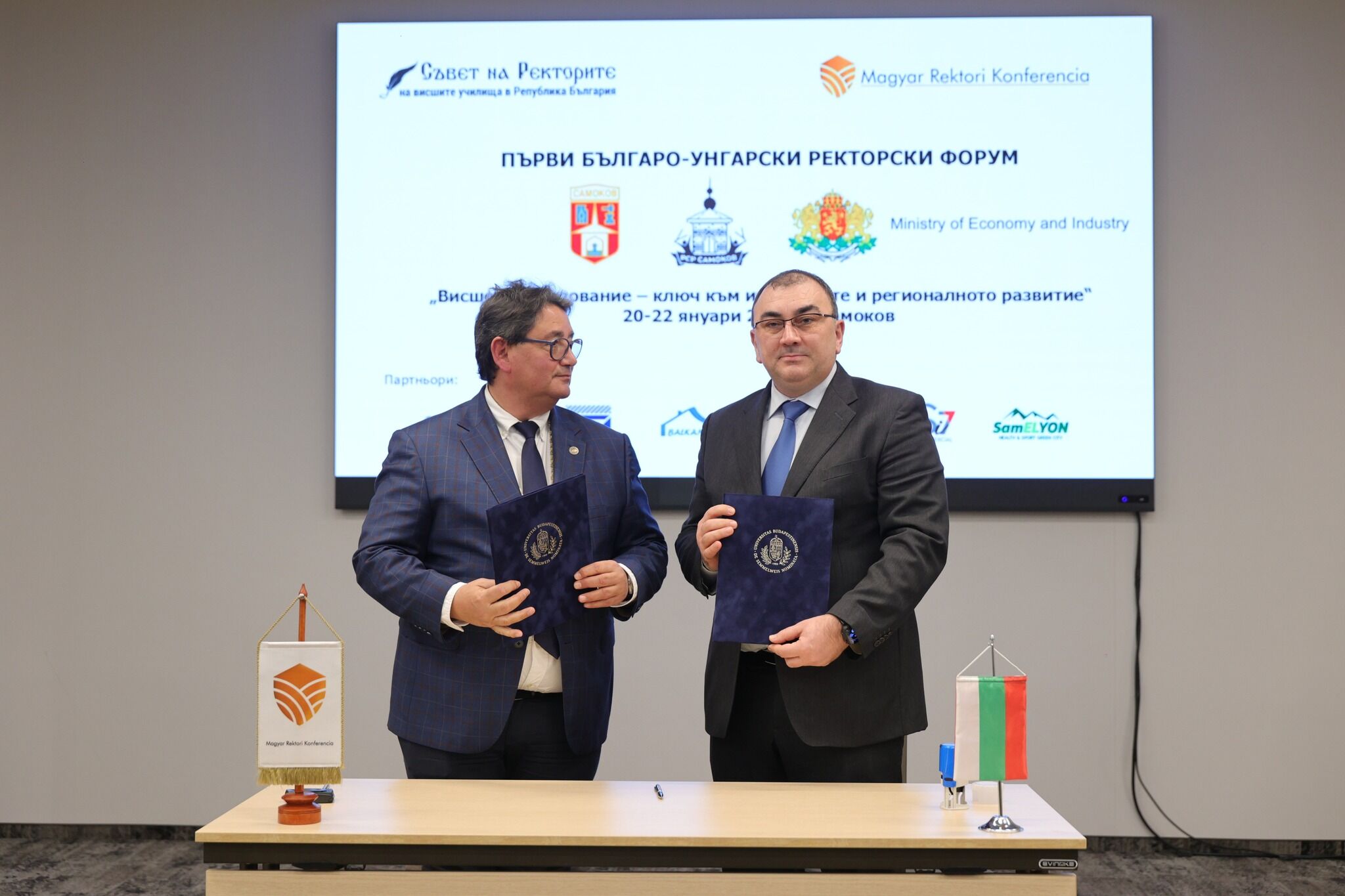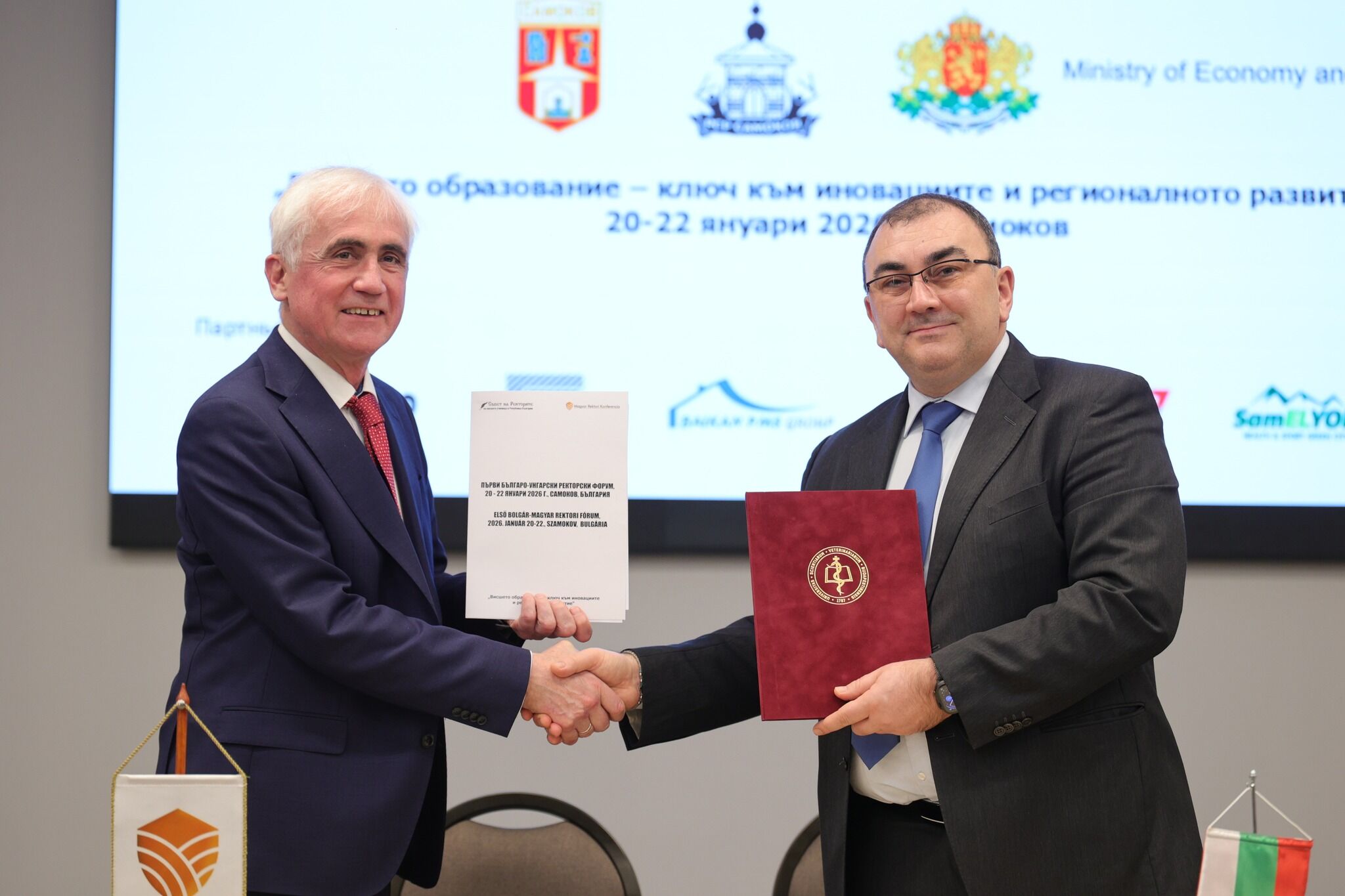 Medical University – Pleven, represented by its Rector Prof. Dr. Dobromir Dimitrov, signed two memoranda of cooperation with prestigious Hungarian higher education institutions – Semmelweis University, Budapest, represented by its Rector Prof. Dr. Béla Merkely, and the University of Veterinary Medicine, Budapest, represented by the Vice-Rector for International Affairs Prof. Tibor Bartha. The signing of the agreements took place during the first Bulgarian–Hungarian Rectors’ Forum, organized on the initiative of the Council of Rectors and the Hungarian Rectors’ Association in the town of Samokov in the period January 20–22, 2026. The signed agreements are aimed at establishing a full-fledged partnership in the field of higher education and scientific research, creating a framework for planning and implementing joint activities: